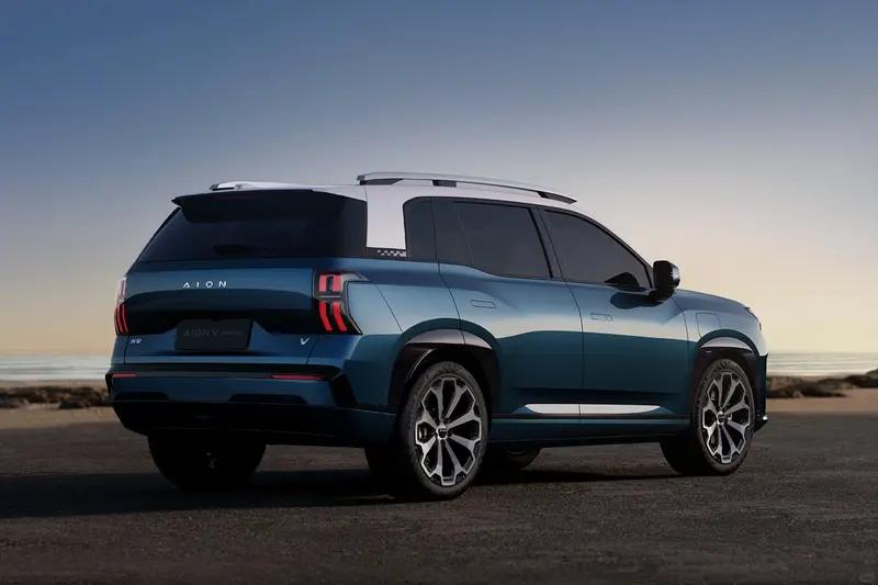 侧面来看新车变化不大,以硬朗线条搭配矩形特征,用赛博龙爪元素点缀整车设计,在车尾还采用了AION字母标,支持匹配18英寸轮辋及215/55 R18轮胎。