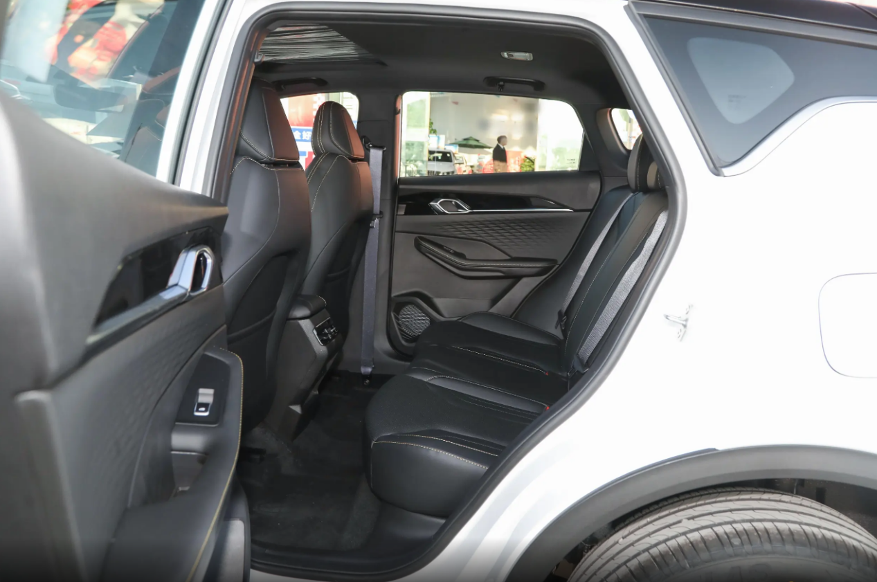 对于家用而言,空间尺寸是实用性的核心。全新第二代长安X5 PLUS有着4540*1860*1590mm的车身尺寸,轴距则为2715mm,相比吉利缤越L在参数上(4380*1800*1609mm、2600mm)更有优势。实际乘坐体验来看,身高180cm的体验者坐进全新第二代长安X5 PLUS后排,腿部空间约为1拳半,较为宽大的座椅也能为腿部和臀部提供充足的支撑,保持了长途乘坐不易疲劳。吉利缤越L由于参数的劣势,在后排腿部空间仅有1拳左右,整体表现中规中矩。另外,它还配备了主驾座椅电动调节,比手动调节的吉利缤越L更方便。