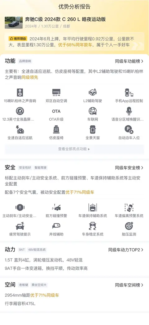 综上所述的新车含税价、用车成本、市场行情、优势分析、同款比价等数据仅供参考。在配置部分,因为二手车非标品,车辆可能会存在配置改装的情况,具体车况信息需要线下结合车辆实际情况进行综合参考。
