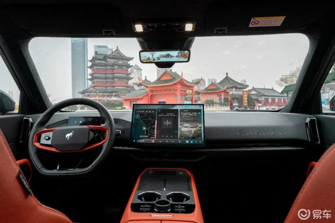 进入车内,智趣烈马展现了与燃油版烈马截然不同的智能科技氛围,彻底摒弃了传统布局。车内最引人注目的是由15.6英寸2.5K Mini-LED中控屏、8.8英寸液晶仪表以及最大投射尺寸达70英寸的AR-HUD抬头显示系统组成的三屏联动。车机系统搭载高通骁龙8255芯片,并接入了豆包与DeepSeek AI-GPT双核智能大模型,保障了交互的流畅性与智能化。一个颇具巧思的设计是,新车配备了自定义智能旋钮,该旋钮自带全彩IPS屏幕,用户可自由设定其功能,通过旋转或按压即可快捷操作空调、音量、驾驶模式等,极大提升了便利性。