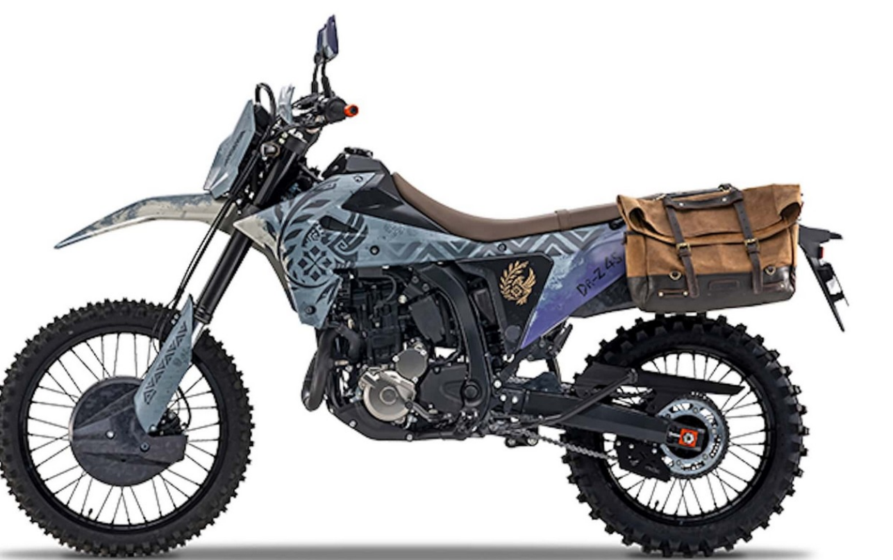 除了四轮车款,铃木也展出一辆以《魔物猎人》中交通工具Seikret为灵感的DR-Z4S越野机车。 该车采用专属涂装,并加装马鞍包,营造出浓厚的冒险与探索氛围。