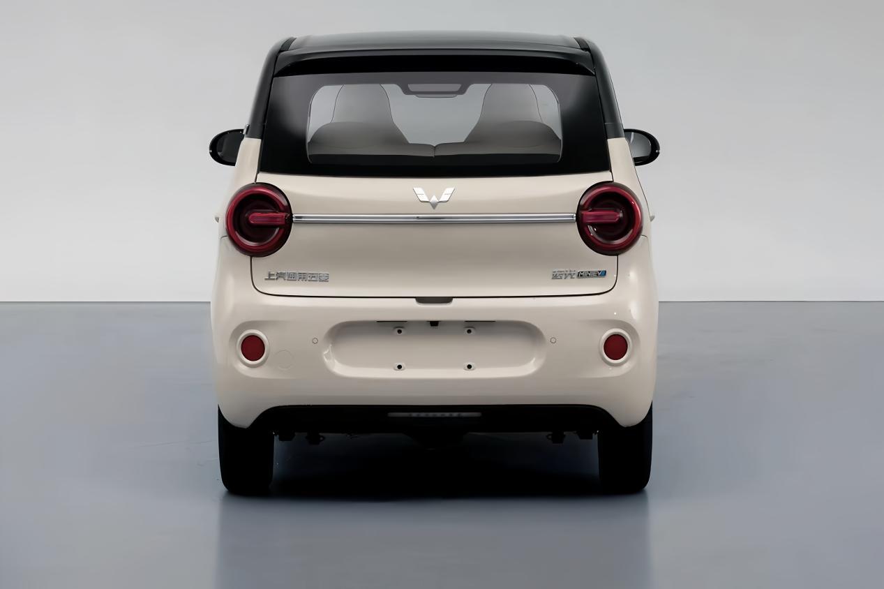 新车推出绿悠悠、白绒绒、灰萌萌三款复古车色,车尾延续圆润风格,椭圆形尾灯与前大灯呼应,中间镶嵌五菱银标,后保险杠黑色饰板与前脸呼应,