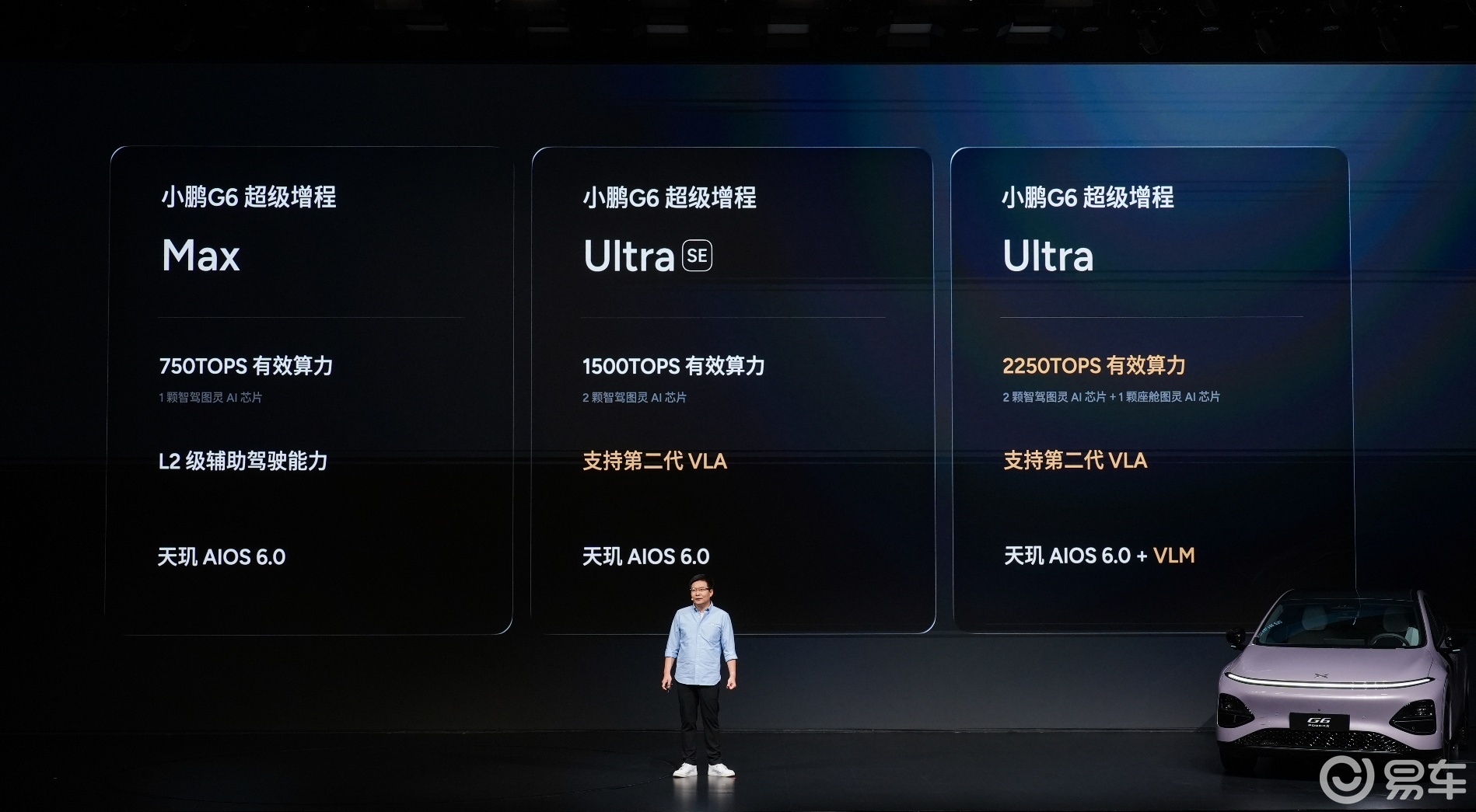 智能配置上,小鹏G6超级增程将第二代VLA技术带入20万级车型,其中Ultra、Ultra SE版本将于4月全量推送该功能,Max版本也将在今年下半年推送蒸馏后的版本。新车车端有效算力至高可达2250TOPS,不同版本分别搭载1-3颗图灵AI芯片,适配不同的智能驾驶需求。