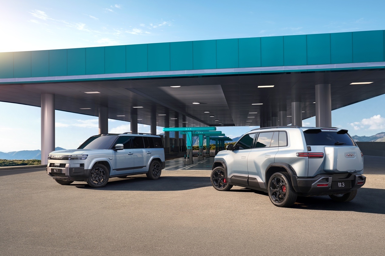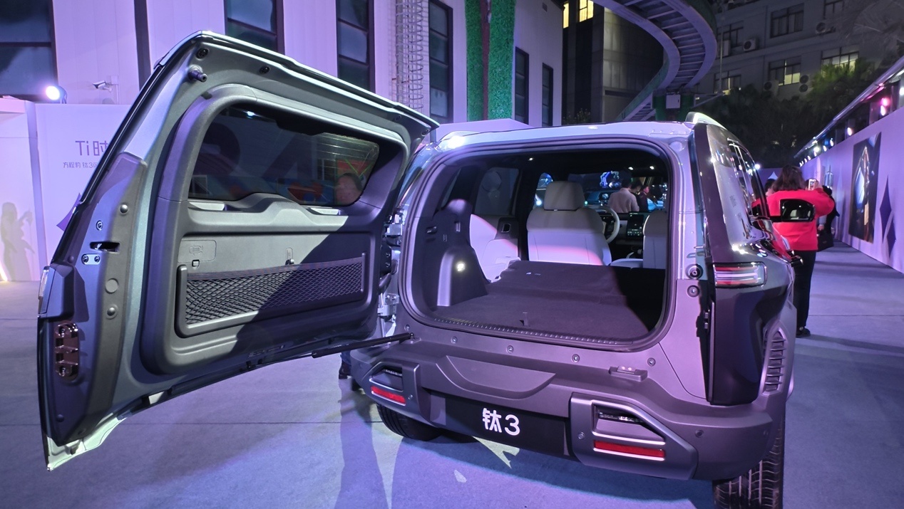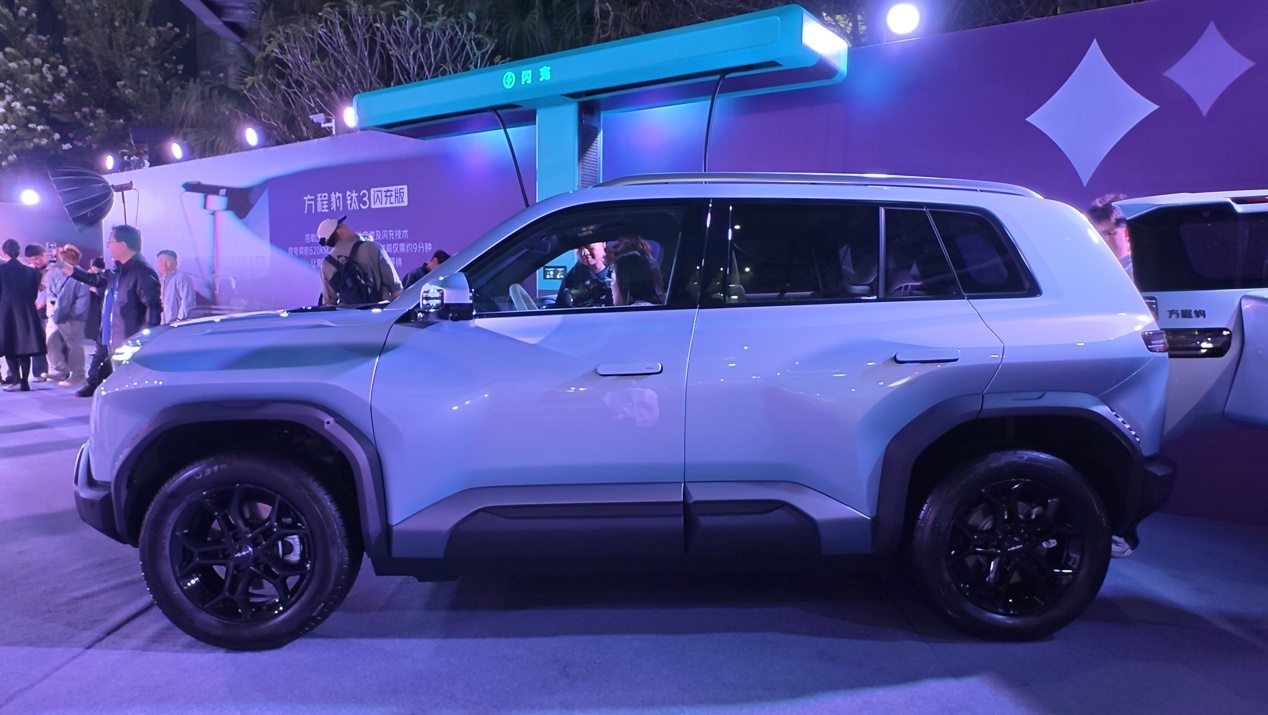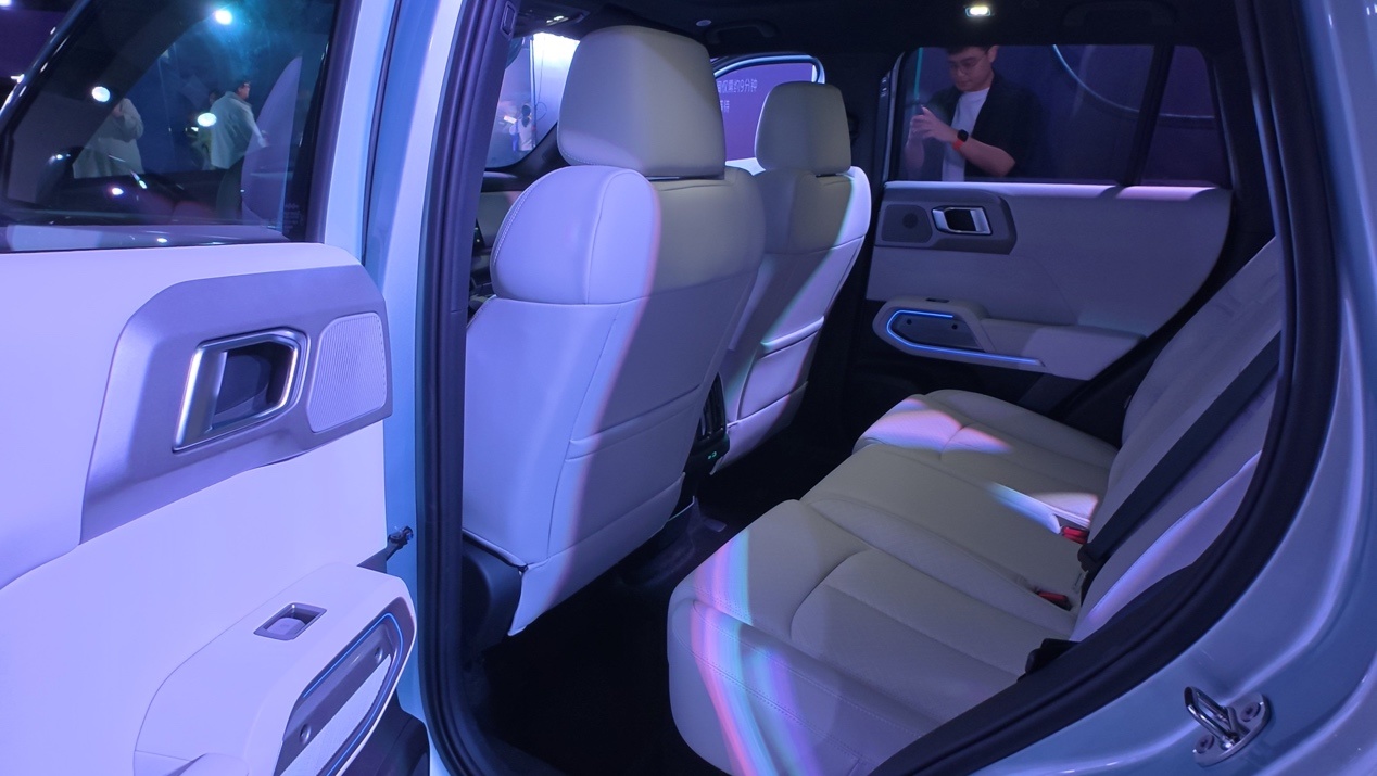 iCAR V23(26款指导价12.28-17.48万元)采用方盒子造型,以轻越野能力和原厂改装为差异化卖点,两驱版最大功率185kW,四驱版335kW,搭载80.16kWh宁德时代磷酸铁锂电池,CLTC续航401-550公里,快充时间约30分钟。