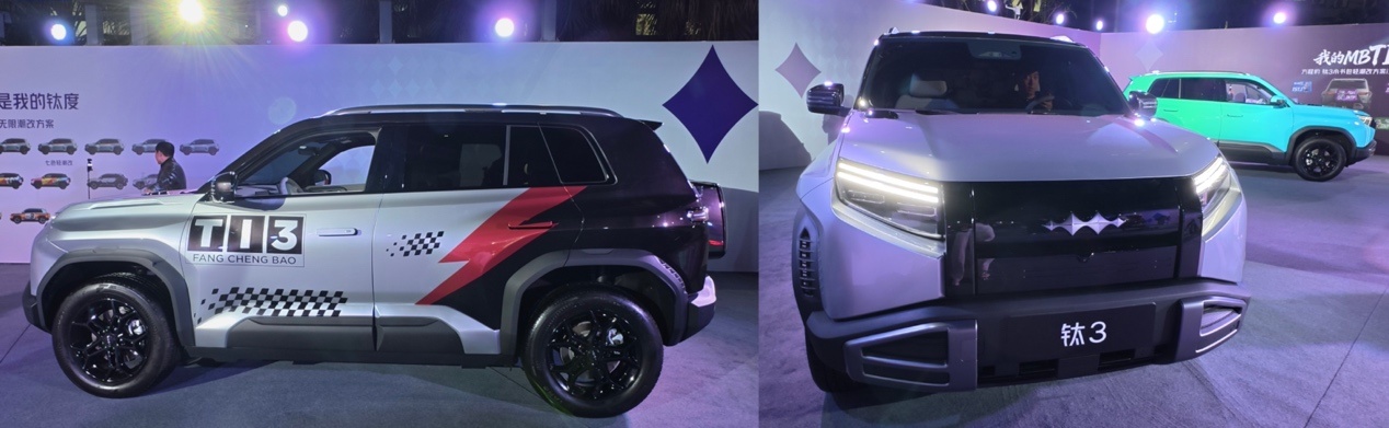 外观方面,包括新增的"星尘紫"车漆,"灰蓝双拼"配色在内共六种车色和三种内饰配色方案选择。官方提供3套可更换前脸、18套全车改色方案及16种《钛3的MBTi》主题潮改,另有7套轻潮改方案与16种小书包轻潮改可选。