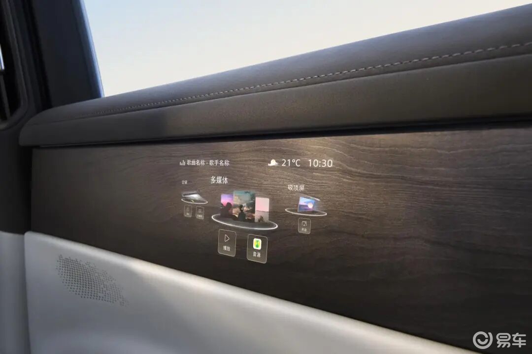 另外,在显示屏幕上,上汽大众玩出了新花样,例如二排两侧门板各内嵌一块6英寸控制屏,采用了微孔膜片技术实现熄屏时的视觉隐藏,可调节冰箱、座椅等。
