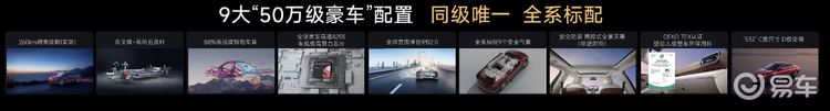 9大标配包含:①260km纯电续航(实测);②双叉臂+高阶五连杆;③88%高强度钢铝车身;④全球首发高通8255车规级高算力芯片;⑤全球首搭博世IPB 2.0;⑥全系标配9个安全气囊;⑦安全防滚两段式全景天幕(带遮阳帘);⑧OEKO TEX认证婴幼儿级整车环保用料;⑨“532” C级尺寸D级空间。