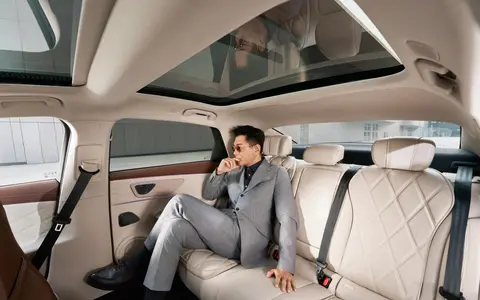 这车尺寸挺大的,车长接近五米,轴距2845毫米,比雅阁还长一点。后排能放一张1.8米的床垫,感觉露营能躺着睡。座椅还能调节差不多125度,坐上去挺舒服,还有按摩功能,后排扶手宽得像个吧台,不过这些估计都是高配才有。